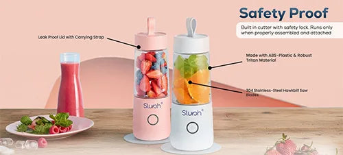 Once Slursh Bolt -350 ML Blender is fully charged, it is ready to make your favorite smoothies, juices and much more. You need to press and hold the power button, the White LED will blink 3 times and slurshing will begin. To stop, you need to press and release the power button again to stop.