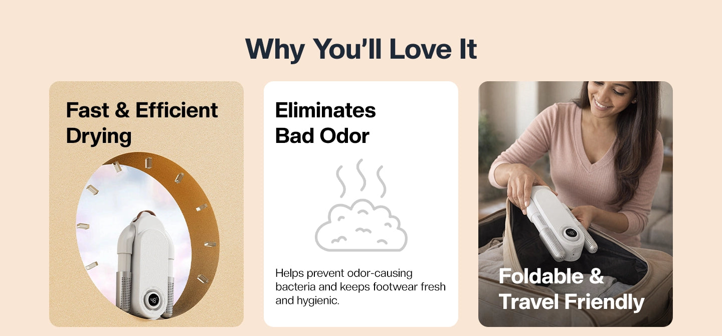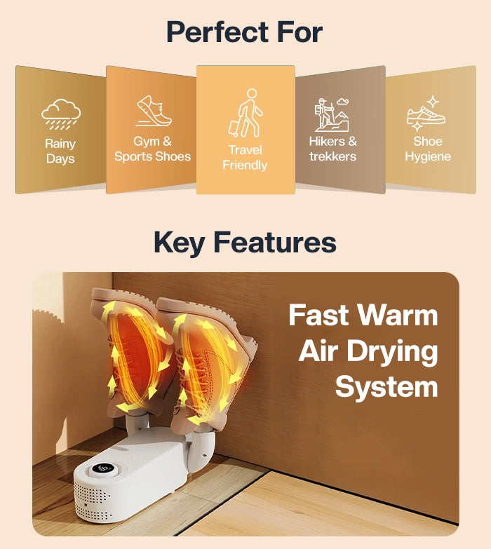 It warms up shoes to prevent frostbite and discomfort from cold, damp footwear.