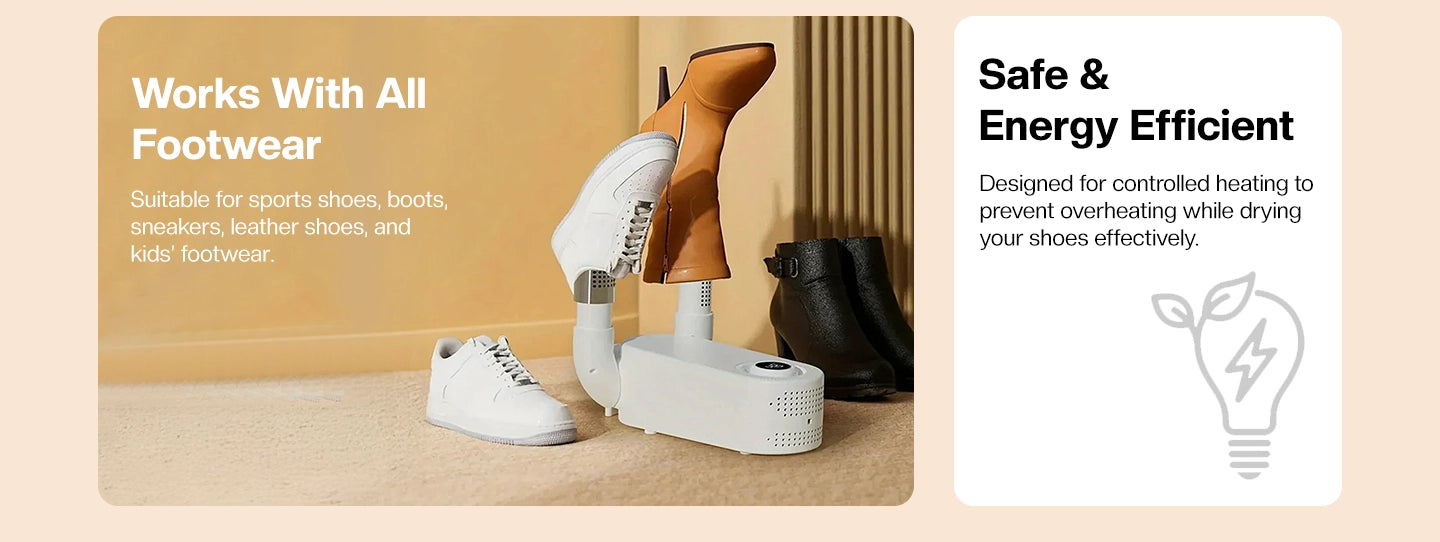 Yes, it uses controlled, low-temperature heat that’s safe for leather formals, sports shoes, and kids' shoes.