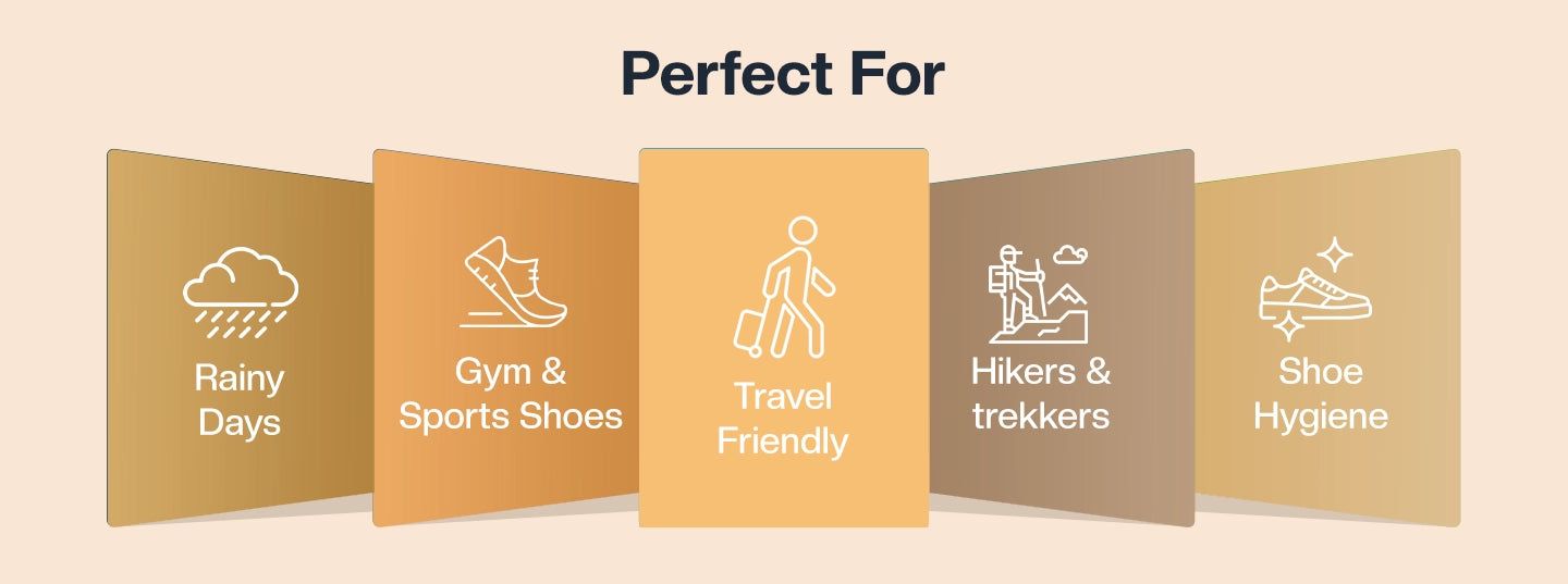 Works with sneakers, boots, formal shoes, sports shoes, studs, turf shoes, ski boots, and casual footwear.